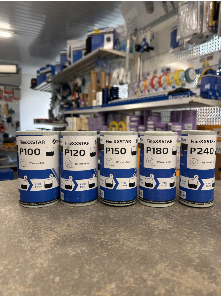 Grūdėtumas: P80, P100, P120, P150, P240115 mm x 5 m, ritinys.